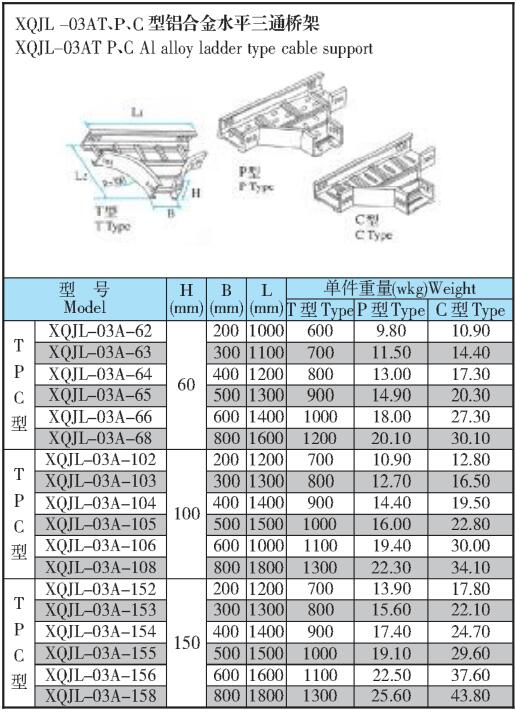 XQJL-03AT、P、C型鋁合金水平三通橋架